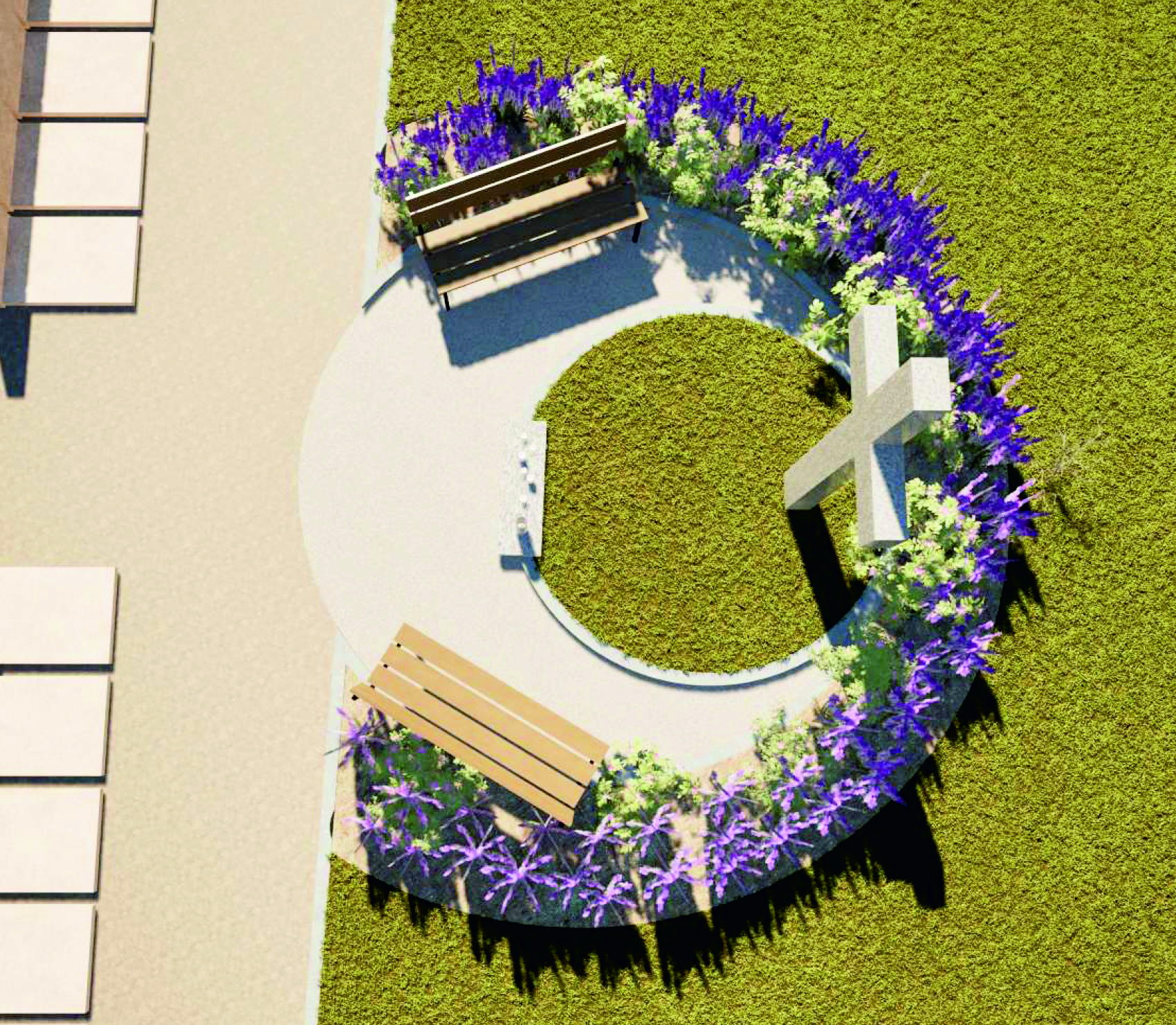 Hlavní prvky návrhu: Nový centrální kříž – stávající kříž bude nahrazen novým žulovým křížem s nápisem „Vsypová loučka“. Kříž bude osazen v travnatém kruhu, který se stane jasně čitelnou dominantou prostoru. Úprava okolí kříže – původní keře budou odstraněny a jejich místo nahradí kruhová kompozice – travnatý kruh se symbolem kříže. Mlatový prstenec ve tvaru písmene „C“, kde budou umístěny dvě lavičky k posezení a ztišení. Okolo mlatového prostoru budou vysazeny trvalky a květiny – levandule, bílé růže a bílé cibuloviny, které podpoří pietní a klidnou atmosféru. Pietní prvky pro svíčky a květiny – před křížem bude instalována žulová deska o rozměru cca 80 × 30 cm, určená pro odkládání svíček. Deska bude doplněna žulovou vázou pro umísťování přinesených květin. Dalších cca 17 žulových desek bude rozmístěno podél celé vsypové loučky, aby návštěvníci měli možnost rovnoměrně umísťovat svíčky a květiny na důstojných místech. Zeleň a povrchy – travnatá plocha bude srovnána, dosypána zeminou a znovu oseta travní směsí. Obrubníky vymezující loučku budou opraveny, aby působily uceleně a čistě. Realizací předkládaného záměru pak vznikne důstojný centrální prostor se žulovým křížem jako jasnou dominantou. Pietní prostředí získá estetickou úpravu zeleně s kvetoucími trvalkami a růžemi. Lavičky nabídnou pozůstalým místo k odpočinku a ztišení. Nové žulové desky umožní kultivované umísťování svíček a květin, čímž se odstraní současné provizorní stolky. Celkově se prostor promění v harmonické a udržitelné pietní místo, které bude odpovídat významu vsypové loučky.
