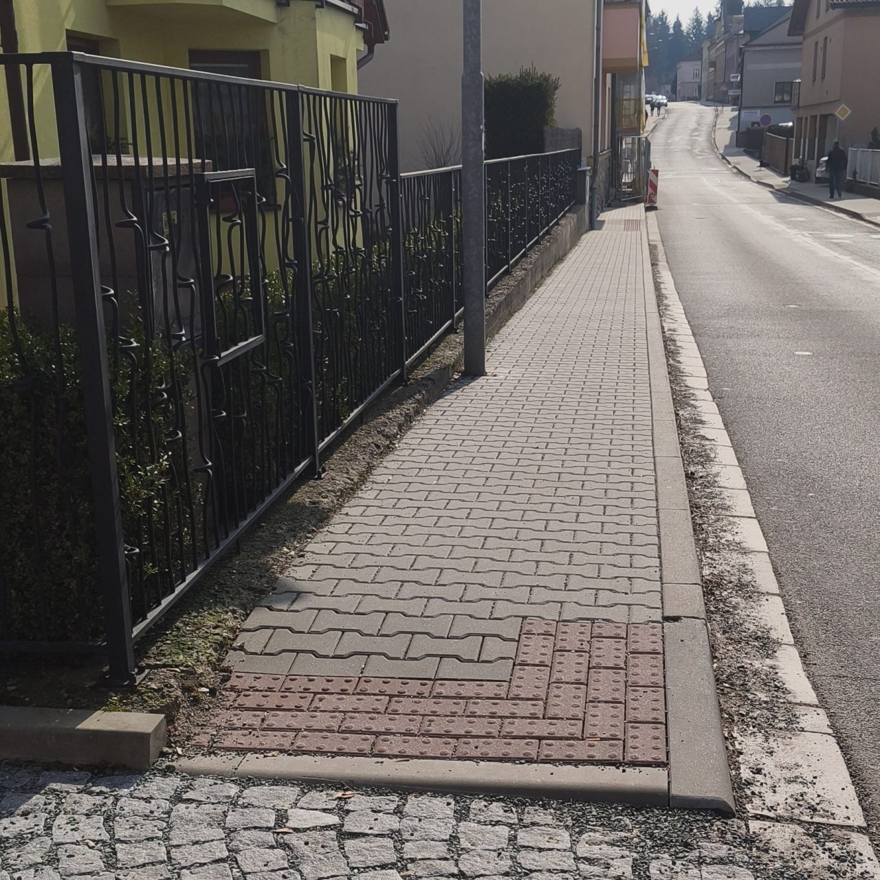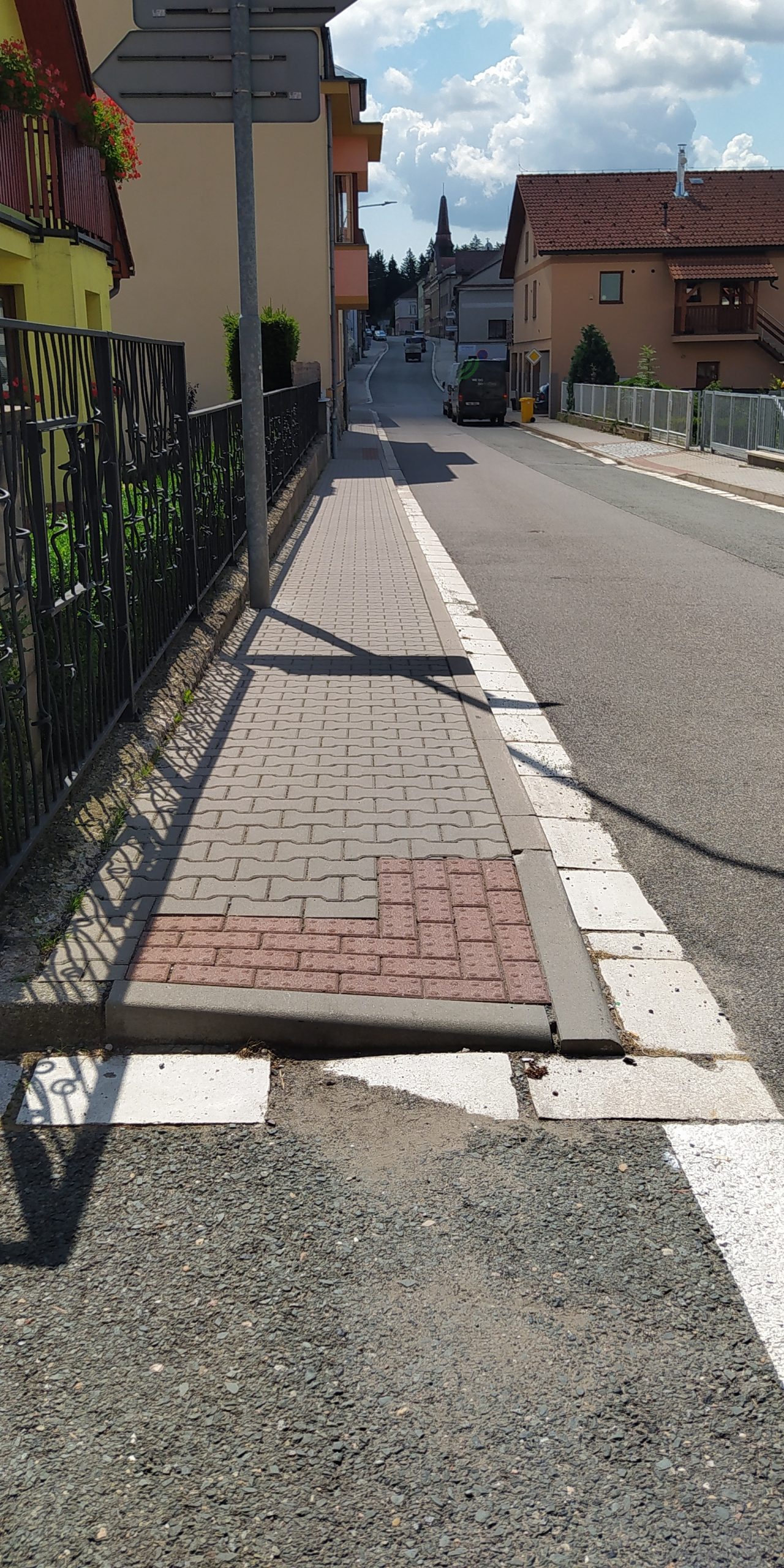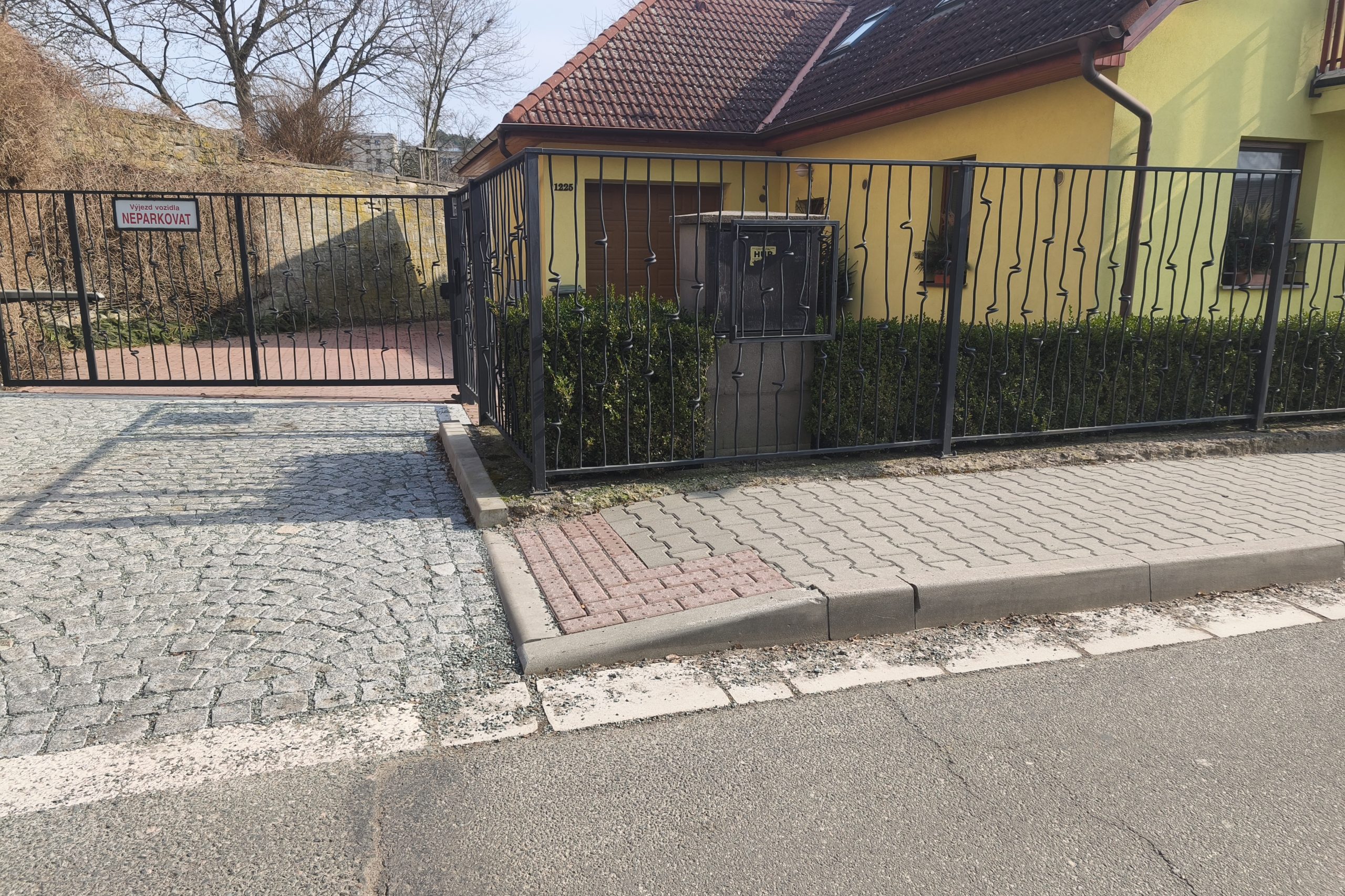 Jako další byl vyřešen sjezd z chodníku na komunikaci pod kostelem „u Schmidtů“ v ulici Manželů Burdychových.