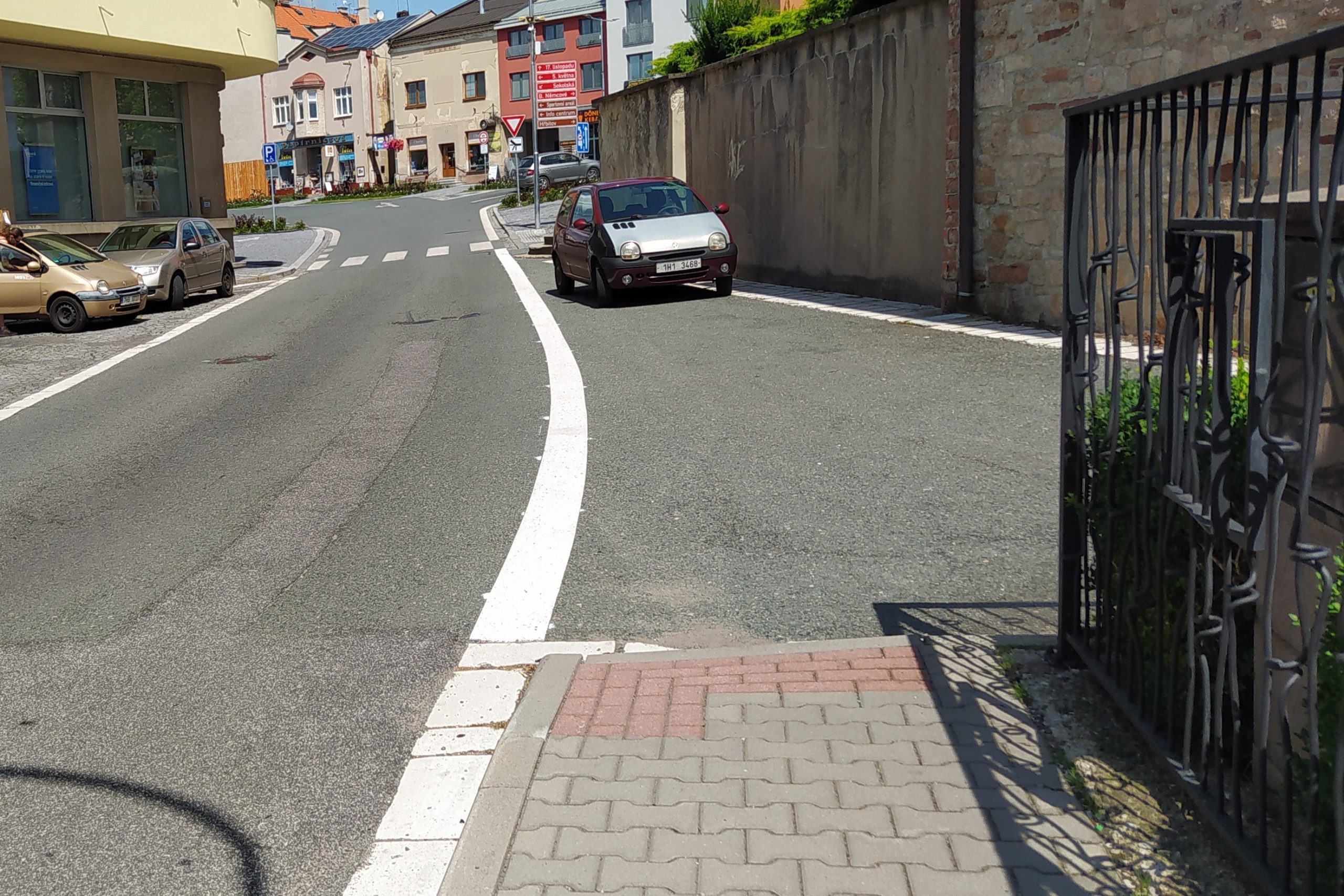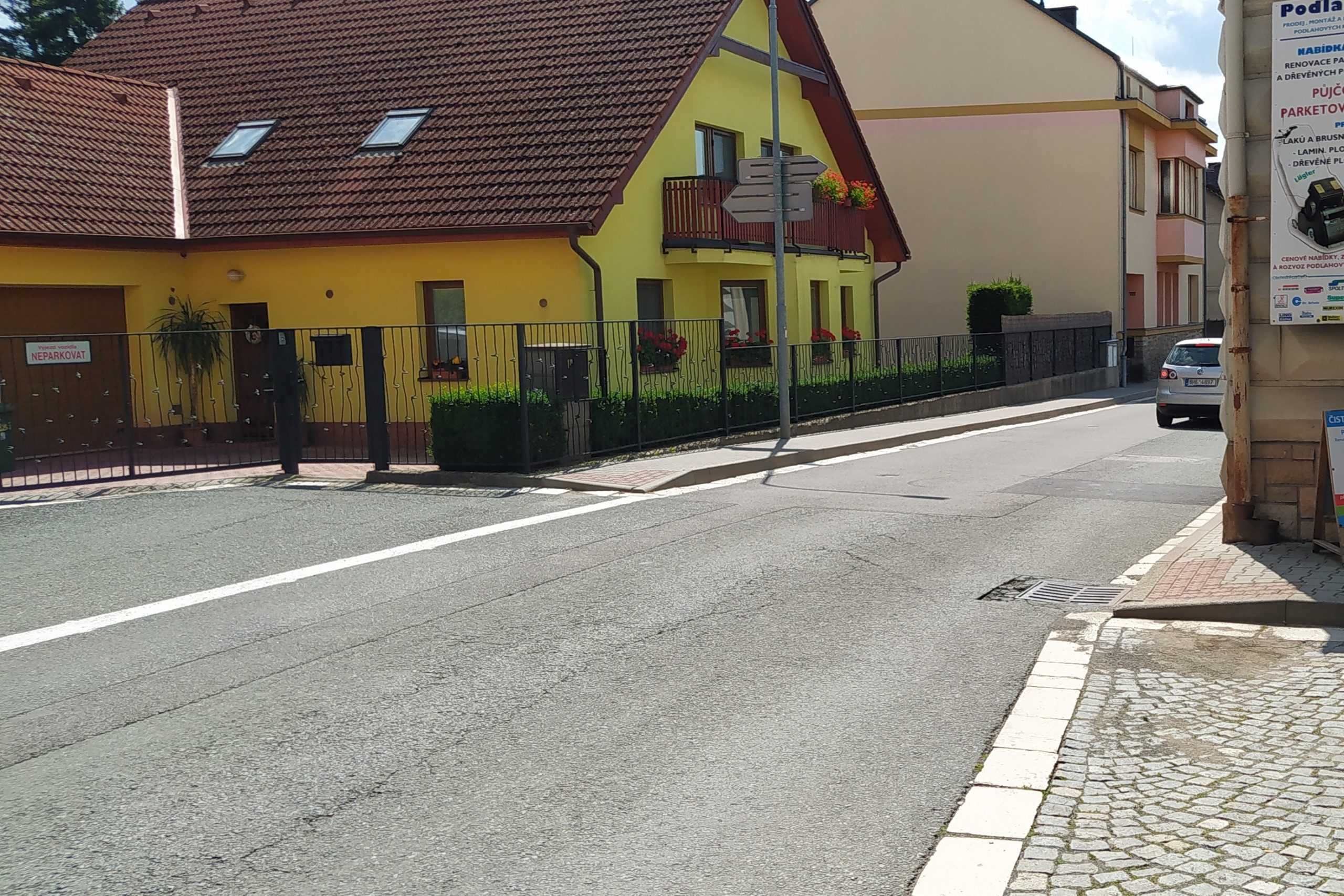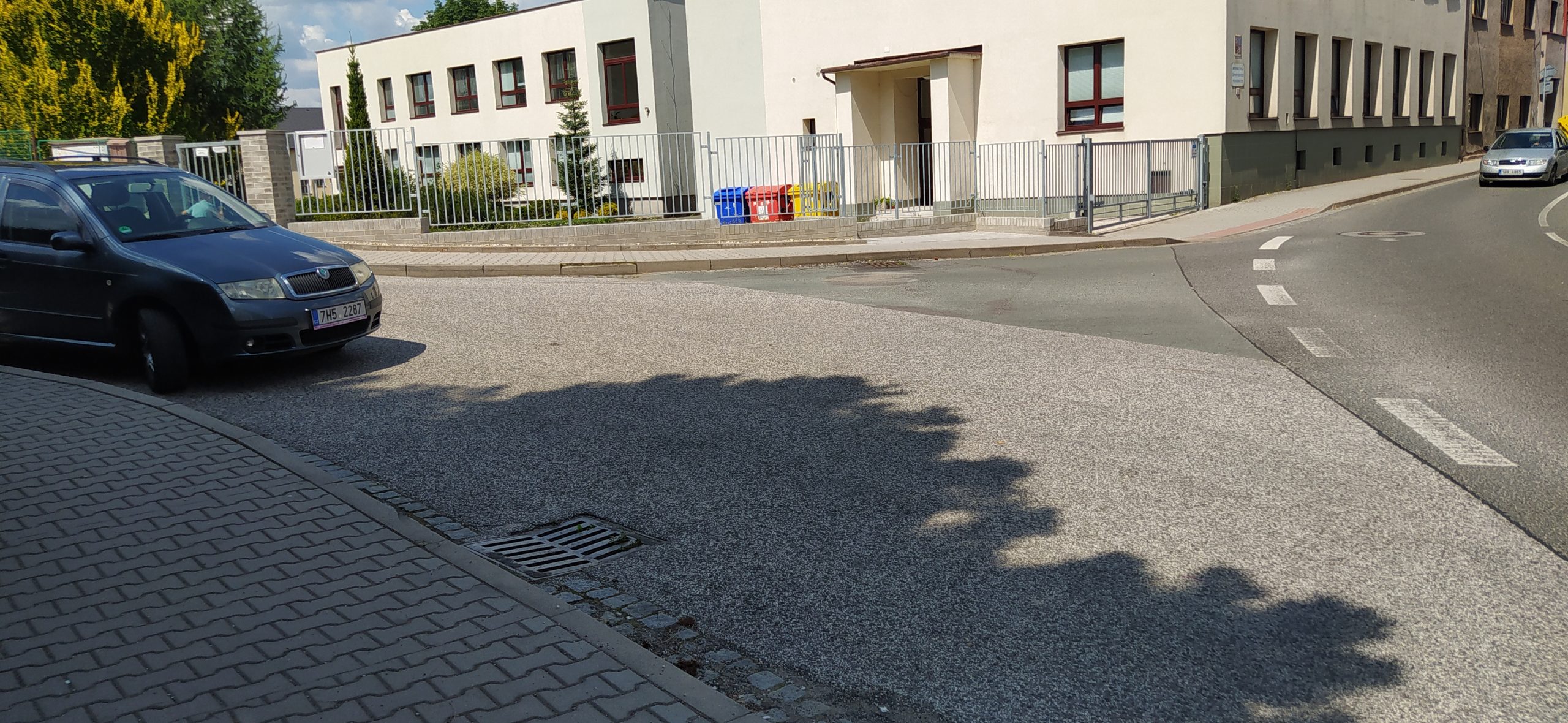 Jako další byl vyřešen sjezd z chodníku na komunikaci pod kostelem „u Schmidtů“ v ulici Manželů Burdychových.