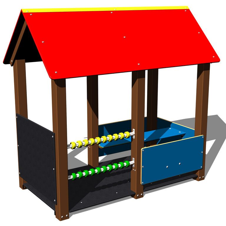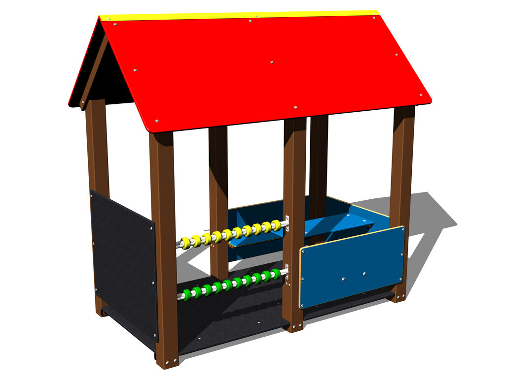 Na dětském hřišti v ulici K Lukám umístit herní prvek – domek na hraní s tabulí, počítadlem, lavičkami a stolkem.
