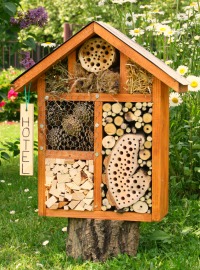 Doplnění stávající výsadby okrasných keřů, trvalek, travin a hmyzích hotelů na pozemcích u domu v ulici K Lukám 648.