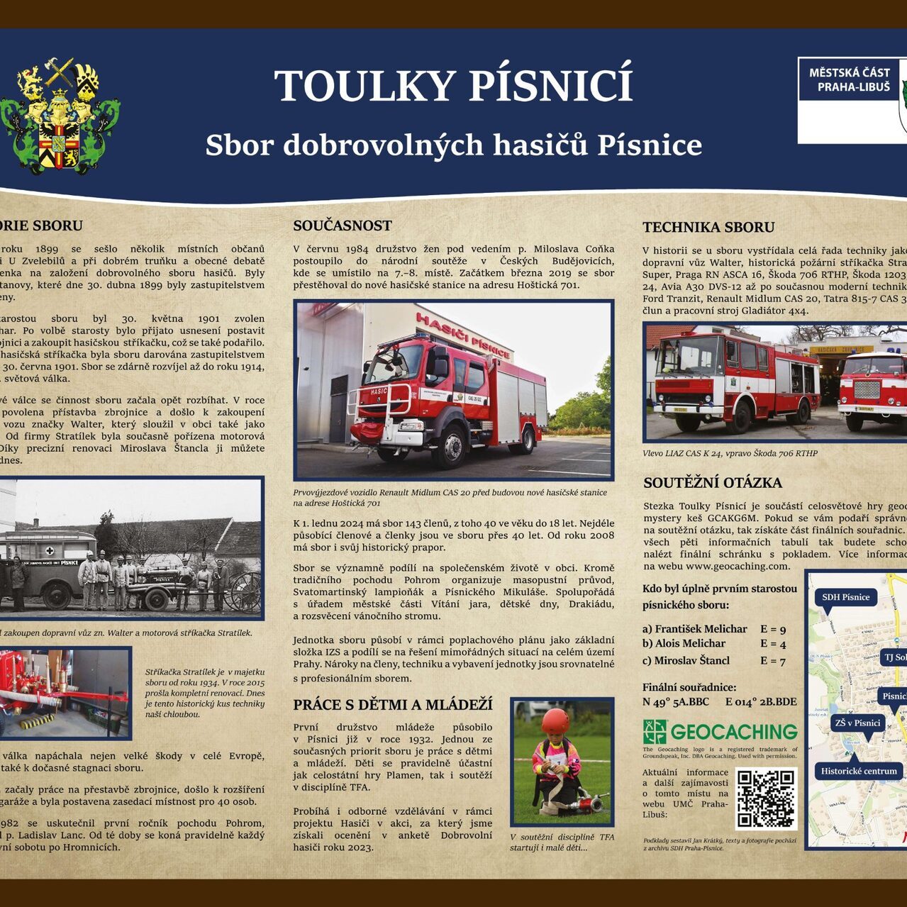 Sada infotabulí popularizující místní historii a důležitá místa. Navazujeme na realizovaný projekt Toulky Písnicí.