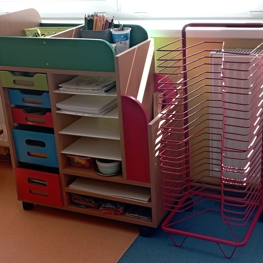 - Kovový stojan na sušení výkresů a stolek na výtvarné potřeby do každé třídy MŠ