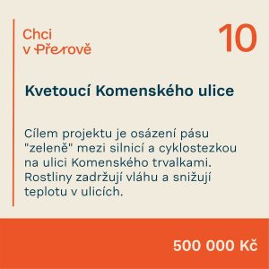 Obsahem návrhu je osázení pásu „zeleně“ mezi silnicí a cyklostezkou na ulici Komenského trvalkami. Jeho realizací dojde ke zlepšení vzhledu Komenského ulice od budovy gymnázia směrem ke kostelu na Šířavě. Díky kvetoucím trvalkám, které by nahradily stávající nevzhledný trávník by došlo také alespoň k částečnému zlepšení prostředí.