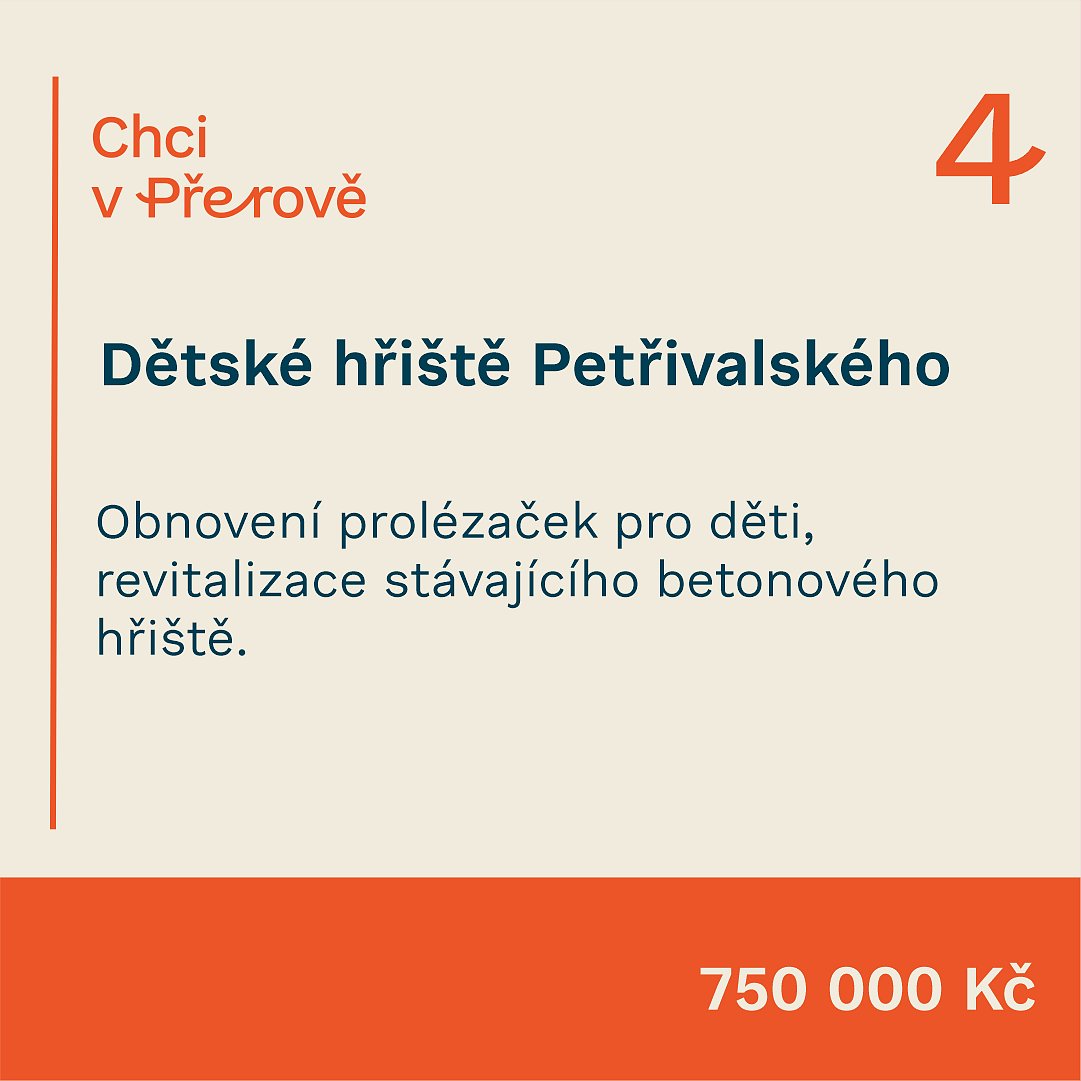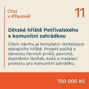Cílem návrhu je kompletní revitalizace stávajícího, zastaralého dětského hřiště mezi ulicemi Petřivalského, Kouřílkova a Bří Hovůrkových. Projekt počítá s obnovou herních prvků, bezpečnostních povrchů, doplněním laviček, odpadkových košů a instalací malého prostoru pro komunitní zahrádku, kde si děti a rodiny mohou zábavnou formou pěstovat květiny nebo zeleninu.