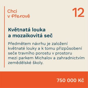 Předmětem návrhu je založení květnaté louky a k tomu přizpůsobení seče travního porostu. Zájmový pozemek je travnatý prostor mezi parkem Michalov a zahradnictvím Střední školy zemědělské. Nově založená plocha bude z vhodných květnatých druhů o rozloze v řádu desítek metrů čtverečných. Obsahem návrhu je také mozaikovitá seč této plochy.