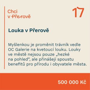Myšlenkou je proměnit vybrané travnaté plochy na kvetoucí louky/pásy lučních květin. Louky ve městě nejsou pouze „hezké na pohled“, ale přinášejí spoustu benefitů pro přírodu i obyvatele města. Lépe zadržují vláhu, zvyšují biodiverzitu, jsou přirozeným prostředím pro hmyz, především opylovače, a přispívají k čistšímu ovzduší. Vhodným pozemkem je trávník vedle OC Galerie.