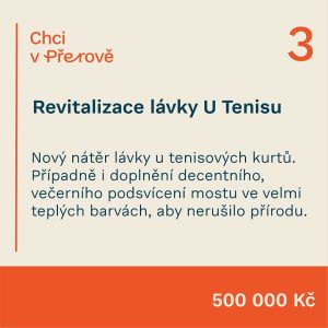 Záměrem je nový nátěr lávky u tenisových kurtů. Případně i doplnění decentního, večerního podsvícení mostu ve velmi teplých barvách (cca 5 000 kelvinů), aby nerušilo přírodu. Lávka navodí příjemnější pocit při procházce okolo Bečvy a při přechodu řeky směrem z města do Michalova a na lagunu.