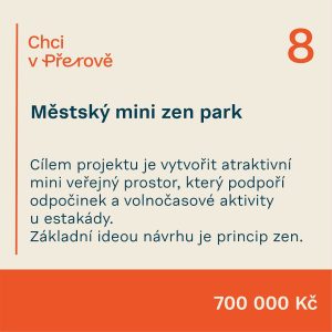 Cílem projektu je vytvořit atraktivní mini veřejný prostor, který podpoří odpočinek a volnočasové aktivity v této lokalitě. Základní ideou návrhu je princip zen. Povrchové úpravy jsou navrženy z betonové a řezané žulové dlažby, která spojuje estetiku s dlouhodobou odolností. Prvky sedáků a schody jsou z žuly a žulových krajin.