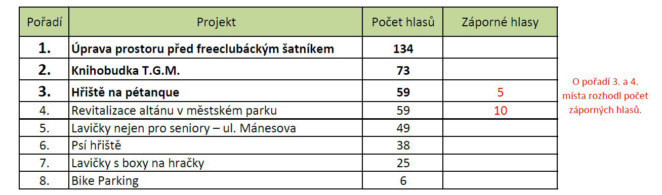 Tento požadavek vznikl v komunitním centru Free-club, kde maminky diskutovaly nad tématikou dětských hřišť. U dětských hřišť jim chybí uzamykatelné boxy na hračky pro děti ideálně ve spojení s lavičkou.