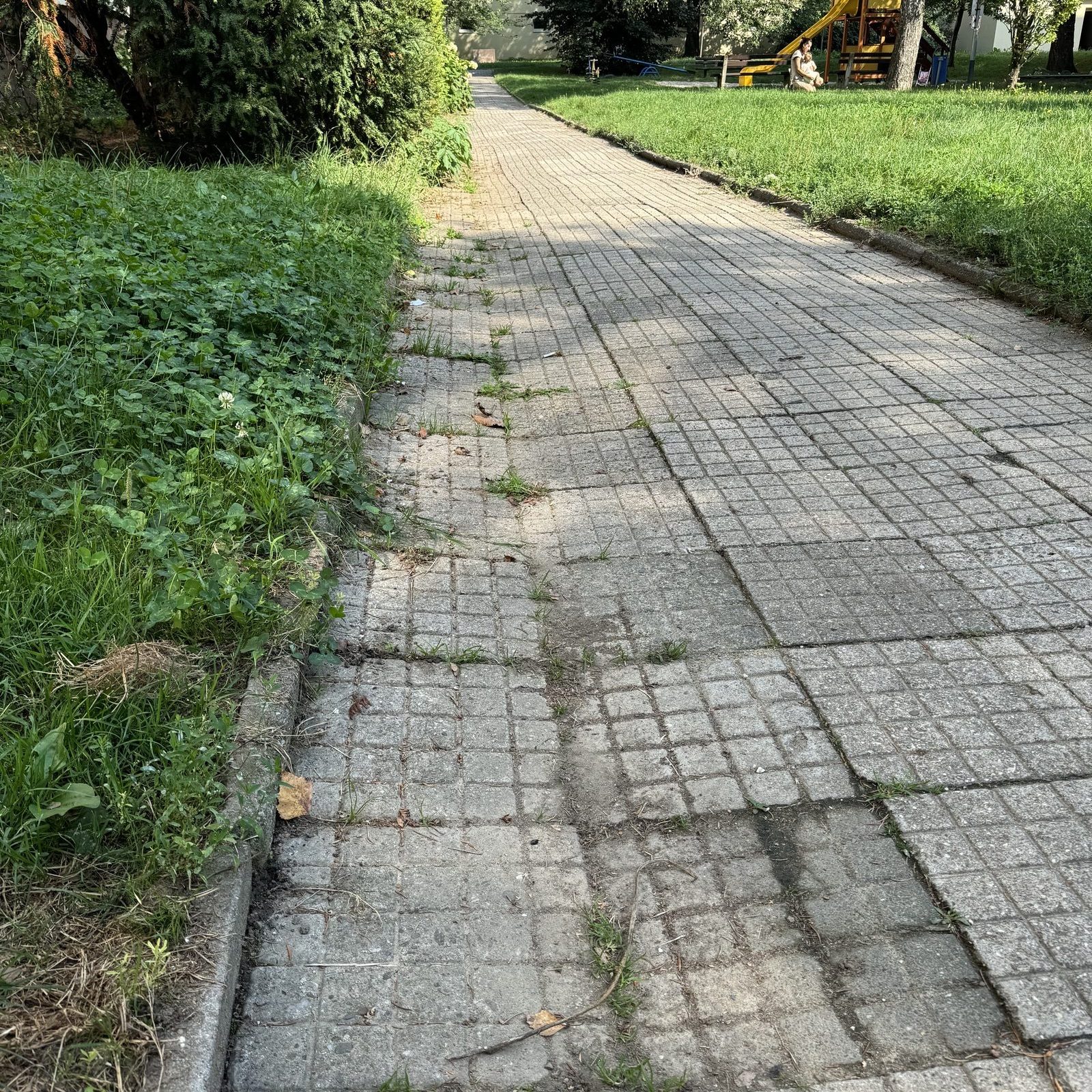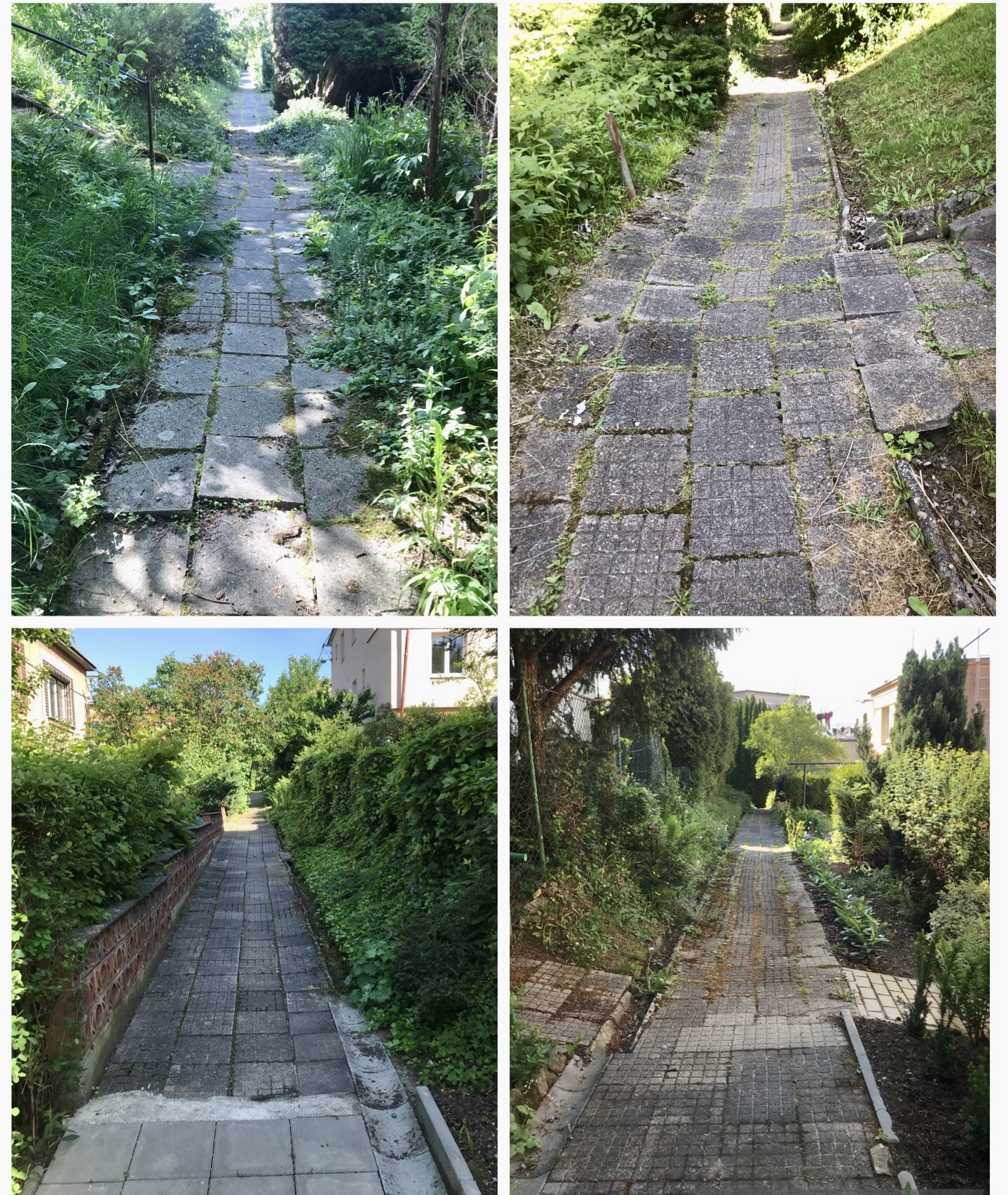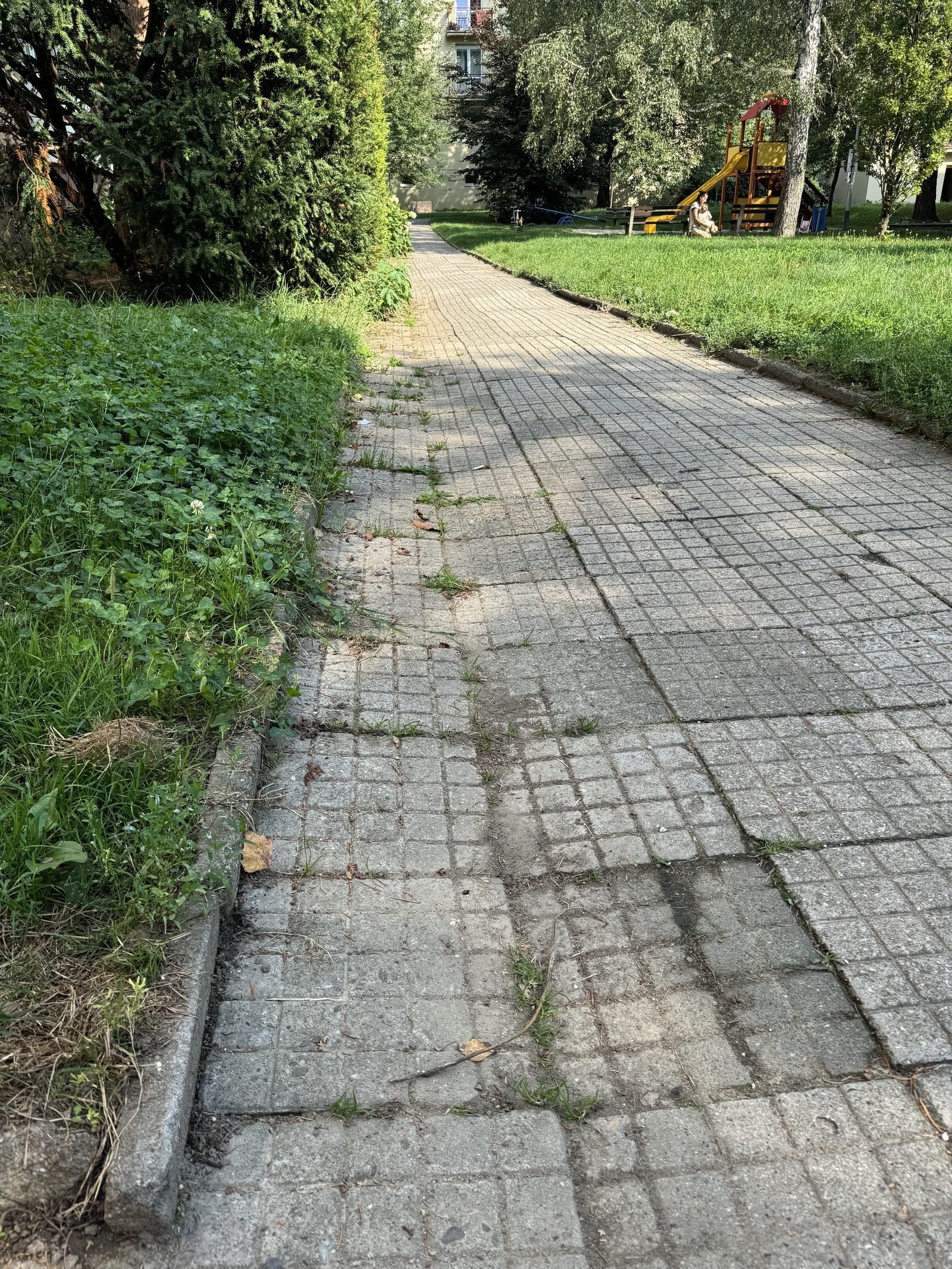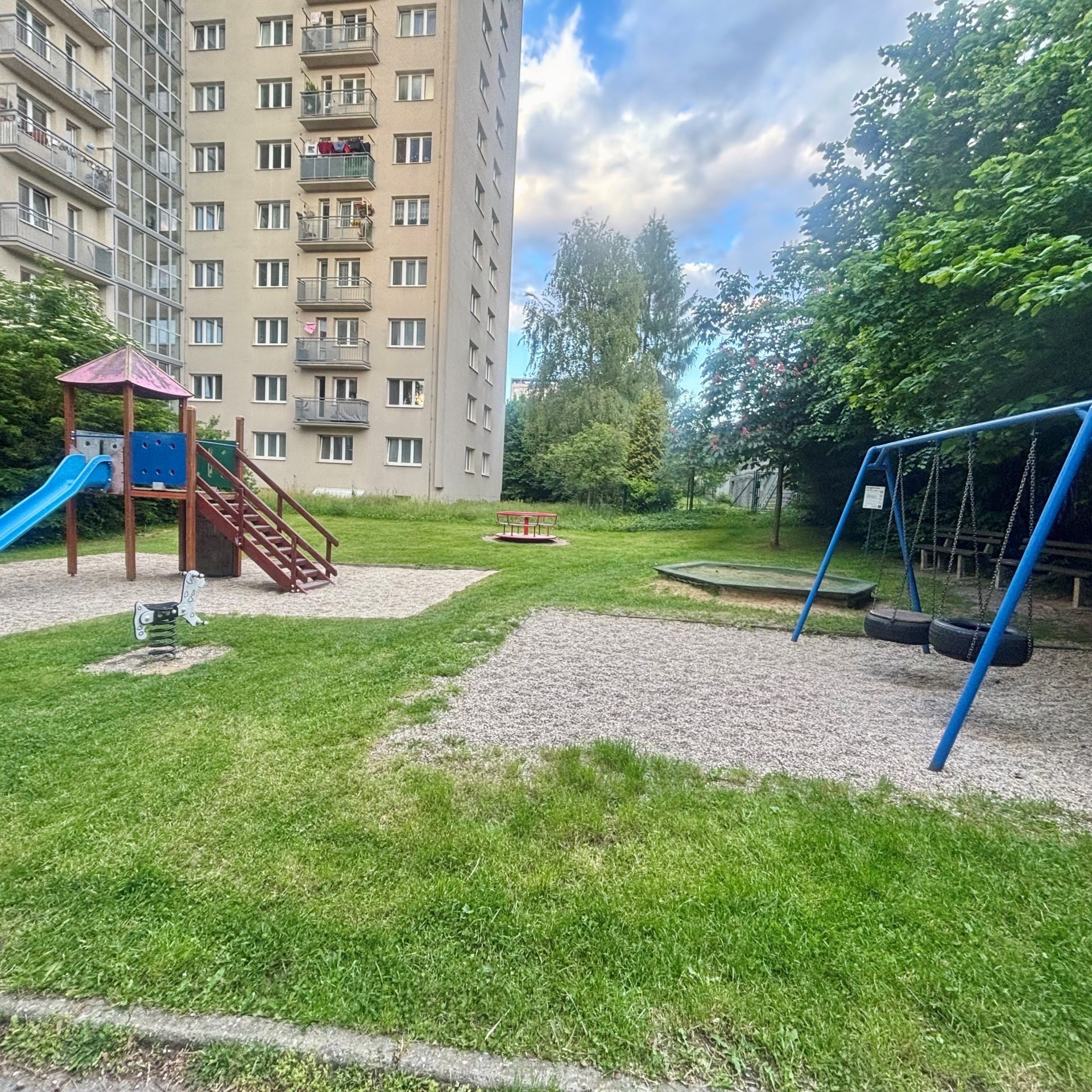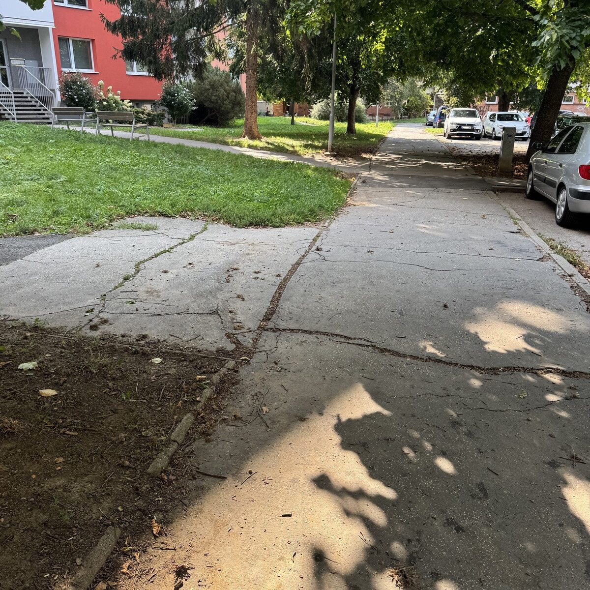 POPIS: V současné době je zmíněný prostor v dezolátním, nevyužitelném stavu. Povrch veřejného prostoru je popraskaný, místy prorostlý trávou a plevelem. Místo je nebezpečné pro jakékoli aktivity – hrozí zakopnutí, pád či jiné úrazy. Ocelová konstrukce podél této betonové plochy vykazuje známky koroze a také představuje bezpečnostní riziko. Prostor působí opuštěně a nevábně. Přilehlé dětské hřiště disponuje pískovištěm a houpací kovovou konstrukcí. Místo je velmi frekventované nejen obyvateli sídliště, ale také klienty zdejších služeb – veterinární ordinace, fyzioterapie pro zvířata, restaurace, autoservis, dětská skupina, mateřská školka, klub pro seniory. Revitalizace veřejného prostoru a hřiště by zajistila bezpečnost pro všechny uživatele – děti, dospívající, dospělé i stárnoucí osoby. Dále by přispěla ke zvýšení kvality veřejného prostoru, který má přímý dopad na komunitní život a psychomotorický vývoj dětí. Vliv má také na integraci a socializaci dětí z různých sociálních skupin a v neposlední řadě na podporu pohybové aktivity a zdravého životního stylu. Zlepšilo by se estetické vnímání prostředí, který nyní působí nevzhledně. Také by se posílily komunitní vazby a mezilidské kontakty. Její nevyužití představuje ztrátu potenciálu místa, které by mohlo sloužit komunitě – dětem, rodičům, stárnoucím lidem i široké veřejnosti. Realizací návrhu by se odstranilo bezpečnostní riziko způsobené stavem betonové plochy. Vytvořil by se živý, otevřený a bezpečný veřejný prostor, který bude odpovídat potřebám moderního městského života. Prostor pro volnočasové aktivity, sport a odpočinek – kombinace funkčních zón pro pohyb a hru, relaxaci i komunitní setkávání.